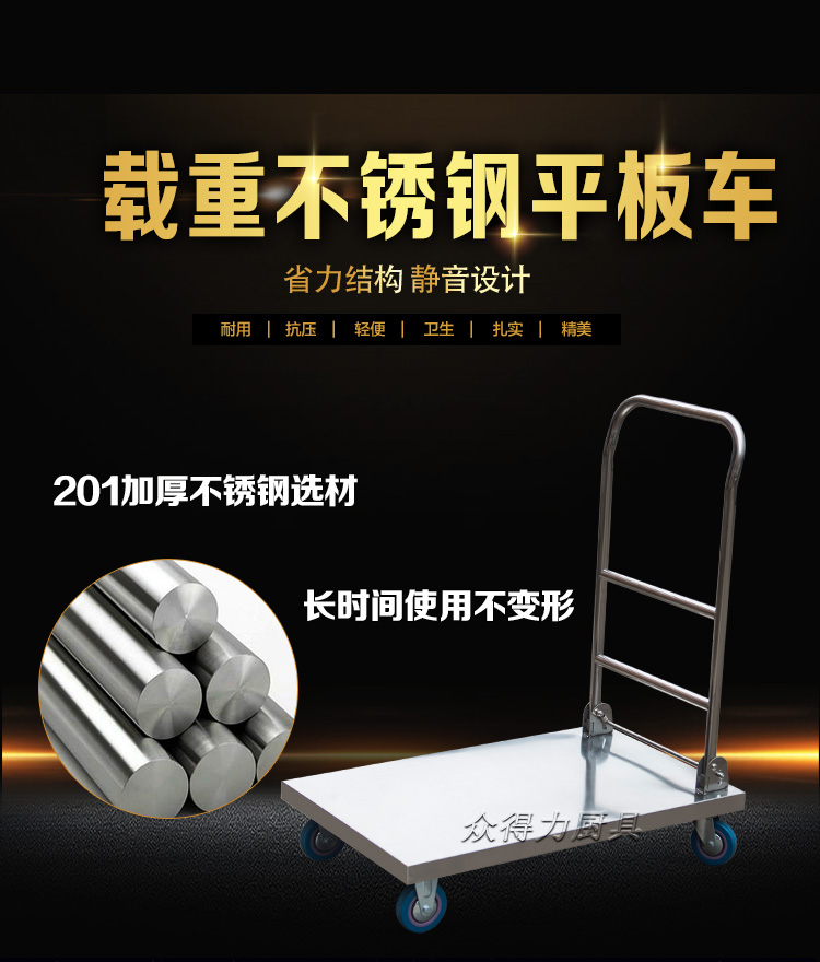 本推車有加強款,普通款,加強款推車采用201加厚不銹鋼板材設計,承載能力強,質量穩(wěn)定可靠。歡迎選購