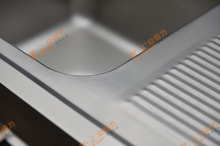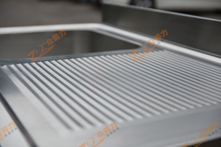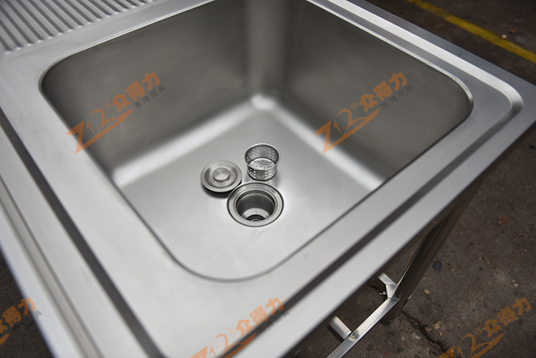 眾得力廚具高端白鋼品質,單星瀝水臺,單星瀝水池,整體采用201 1.2板材,一體拉伸星盆,板材整體沖壓一次成型,無死角,一級板材,紋路清晰有序,光澤度好,做工精細。