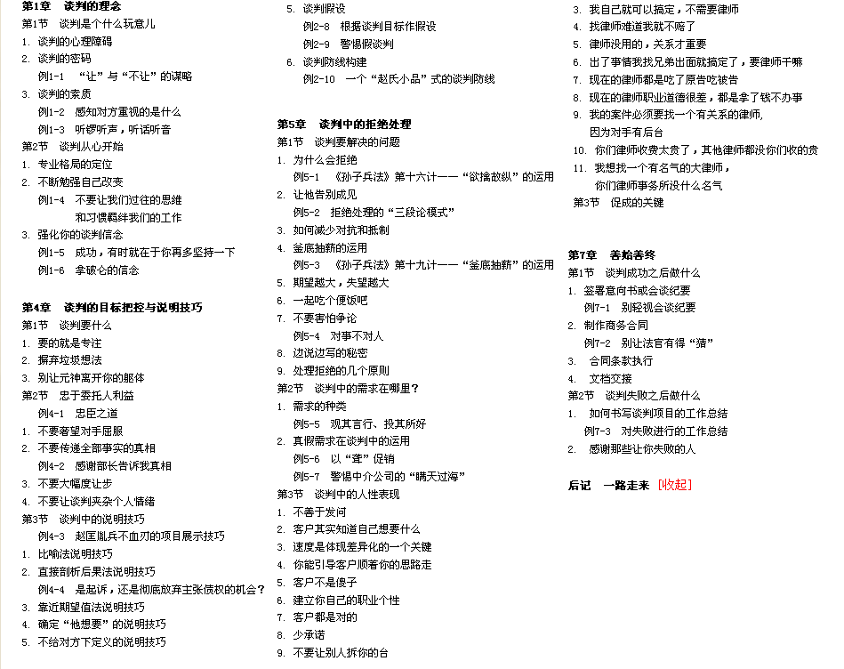 五年的執(zhí)業(yè)經(jīng)驗(yàn),對(duì)律師的整個(gè)職業(yè)生涯而言,實(shí)在是微不足道的。我所做的,只不過是將自己的一些執(zhí)業(yè)感悟盡量理論和系統(tǒng)化而已,而這些感悟或者稱之為經(jīng)驗(yàn)的東西,也正在被我不斷地重復(fù)實(shí)踐并取得了一些成績(jī)。我始終認(rèn)為,談判是一項(xiàng)綜合工程,那些認(rèn)為把純粹的技能提升后就可以成為一名商務(wù)談判高手的想法,不見得是正確的。談判是為人處世的一種修煉,當(dāng)把“做人”這個(gè)亙古不變的道理參透了,“做事”也就水到渠成了。[收起]