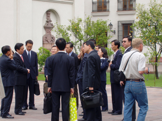 圖片為:舒律師(右二)全程陪同中國(guó)APEC代表團(tuán)拜訪智利總統(tǒng)府,洽談經(jīng)貿(mào)合作