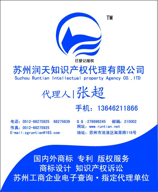 蘇州潤天知識產(chǎn)權(quán)代理有限公司0512-68275925是國家商標局在蘇州地區(qū)專業(yè)從事商標注冊申請|蘇州商標續(xù)展|轉(zhuǎn)讓、商標監(jiān)測、知識產(chǎn)權(quán)訴訟、蘇州軟件著作權(quán)登記\蘇州版權(quán)登記代理等知識產(chǎn)權(quán)服務(wù)的專門機構(gòu)。條形碼登記代理|蘇州商標注冊|蘇州商標|知識產(chǎn)權(quán)訴訟代理|蘇州商標注冊公司|吳江商標注冊公司|太倉商標注冊|太倉商標注冊申請|太倉商標注冊|昆山商標注冊公司|吳江商標注冊|商標轉(zhuǎn)讓申請|商標續(xù)展申請|商標設(shè)計|蘇州LOGO設(shè)計|商標查詢|商標免費查詢|蘇州工業(yè)園區(qū)商標注冊|蘇州新區(qū)商標注冊。商標侵權(quán)的調(diào)查,起訴,應(yīng)訴.知識產(chǎn)權(quán)訴訟