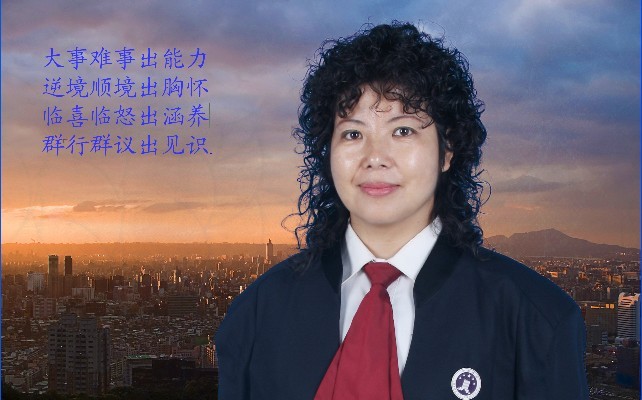 馬慧霞:甘肅璞義律師事務(wù)所律師,中國政法大學(xué) 在職研究生,平?jīng)鍪腥龑谜䥇f(xié)委員,平?jīng)鍪腥龑?nbsp; 民革委員,平?jīng)鍪信蓭熚瘑T會副主任,平?jīng)鍪?nbsp; 女法律工作者聯(lián)誼會常任理事。個人事跡曾被中 國法制報、平?jīng)鋈請髨蟮馈>哂序E馬的奔放性 格,兼有春風(fēng)般細(xì)膩作風(fēng),大氣與嚴(yán)謹(jǐn)兼?zhèn)洌瑘?zhí) 著又不拘泥。不畏艱難,不卑不亢,善于攻克, 不屈不撓,最大的缺點:不服輸,讓家人最無法忍 受的是:學(xué)習(xí)狂,最想去的地方:威尼斯,最頭痛的 事是:缺失唱歌跳舞細(xì)胞,最喜歡的文章:無字碑 歌,最喜歡的自勵格言:沒有最好,只有更好。最 珍貴的禮物是朋友送的幾句話:大事難事出能力, 逆境順境出胸懷,臨喜臨怒出涵養(yǎng),群行群議出 見識。