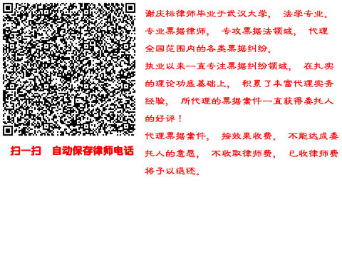 百度搜索:票據(jù)律師謝慶標(biāo) 姓名:謝慶標(biāo)律師 手機(jī):18717187903(歡迎咨詢票據(jù)法律問題) 傳真:027-52301851 執(zhí)業(yè)證號:14201201010330220 律師事務(wù)所:湖北京佑律師事務(wù)所 地址:武漢市武昌區(qū)武珞路330號聯(lián)投新大地6層 郵編:430000 謝慶標(biāo)律師畢業(yè)于武漢大學(xué),法學(xué)專業(yè)。專業(yè)票 據(jù)律師,專攻票據(jù)法領(lǐng)域,代理全國范圍內(nèi)的各 類票據(jù)糾紛。 執(zhí)業(yè)以來一直專注票據(jù)糾紛領(lǐng)域,在扎實(shí)的理論 功底基礎(chǔ)上,積累了豐富代理實(shí)務(wù)經(jīng)驗(yàn),所代理 的票據(jù)案件一直獲得委托人的好評! 代理票據(jù)案件,按效果收費(fèi)。不能達(dá)成委托人的 意愿,不收取律師費(fèi),已收律師費(fèi)將予以退還。